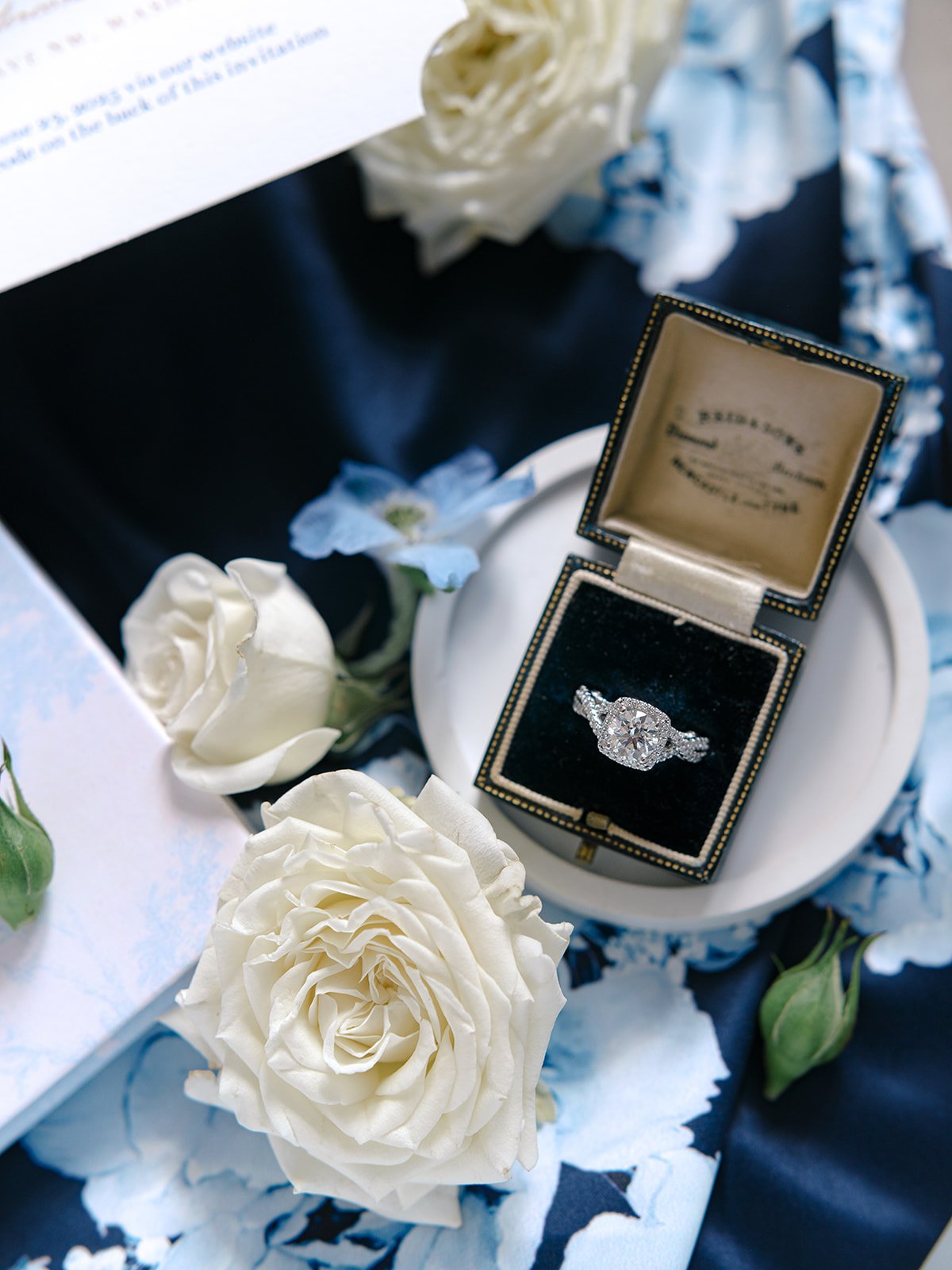 Soft blues, gilded details, and a love story wrapped in quiet, timeless elegance.