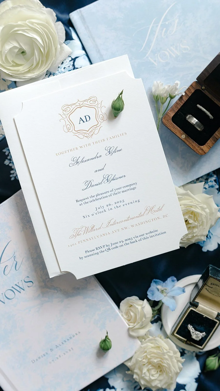 In a setting defined by history and literature, this wedding unfolded like a beautifully written story. Vintage-inspired toile linens, velvet bow accents, and refined preppy details created a timeless foundation, while a library card escort wall and typewritten cocktail signage added a sense of character and wit. The result was a celebration that felt intimate, romantic, and deeply personal.