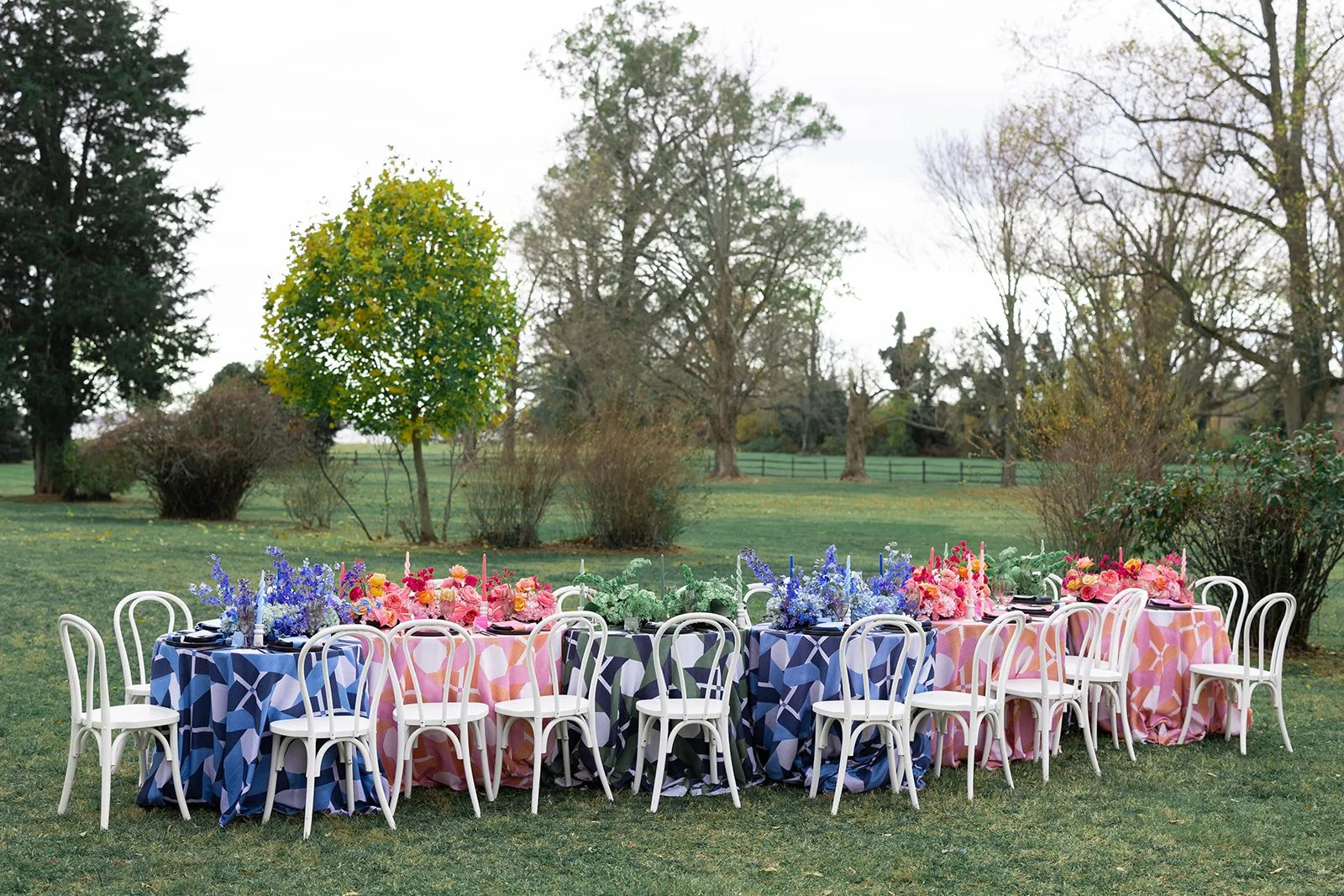 A bold, color-forward celebration where vibrant florals and playful details transformed the space into something immersive and unexpected. Bright palettes, layered textures, and whimsical tablescapes created a design that felt expressive, energetic, and entirely unapologetic.